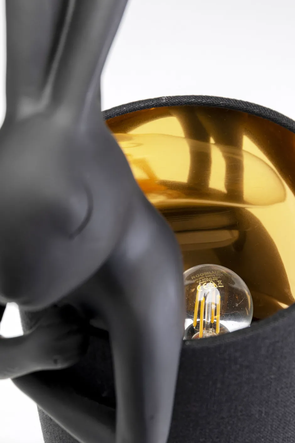 - Die Hasen-Figur als Leuchtenfuß hat den Lampenschirm einfach unter die Ärmchen geklemmt
