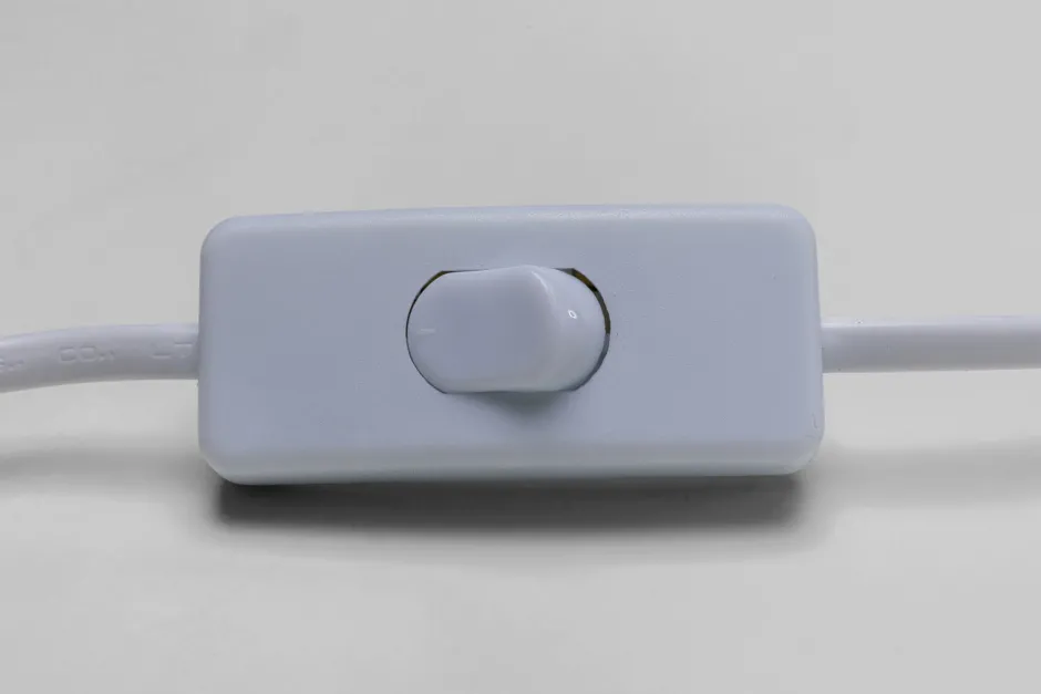 - Das weiße Kabel mit Kippschalter hat eine Kabellänge von insgesamt 170 cm