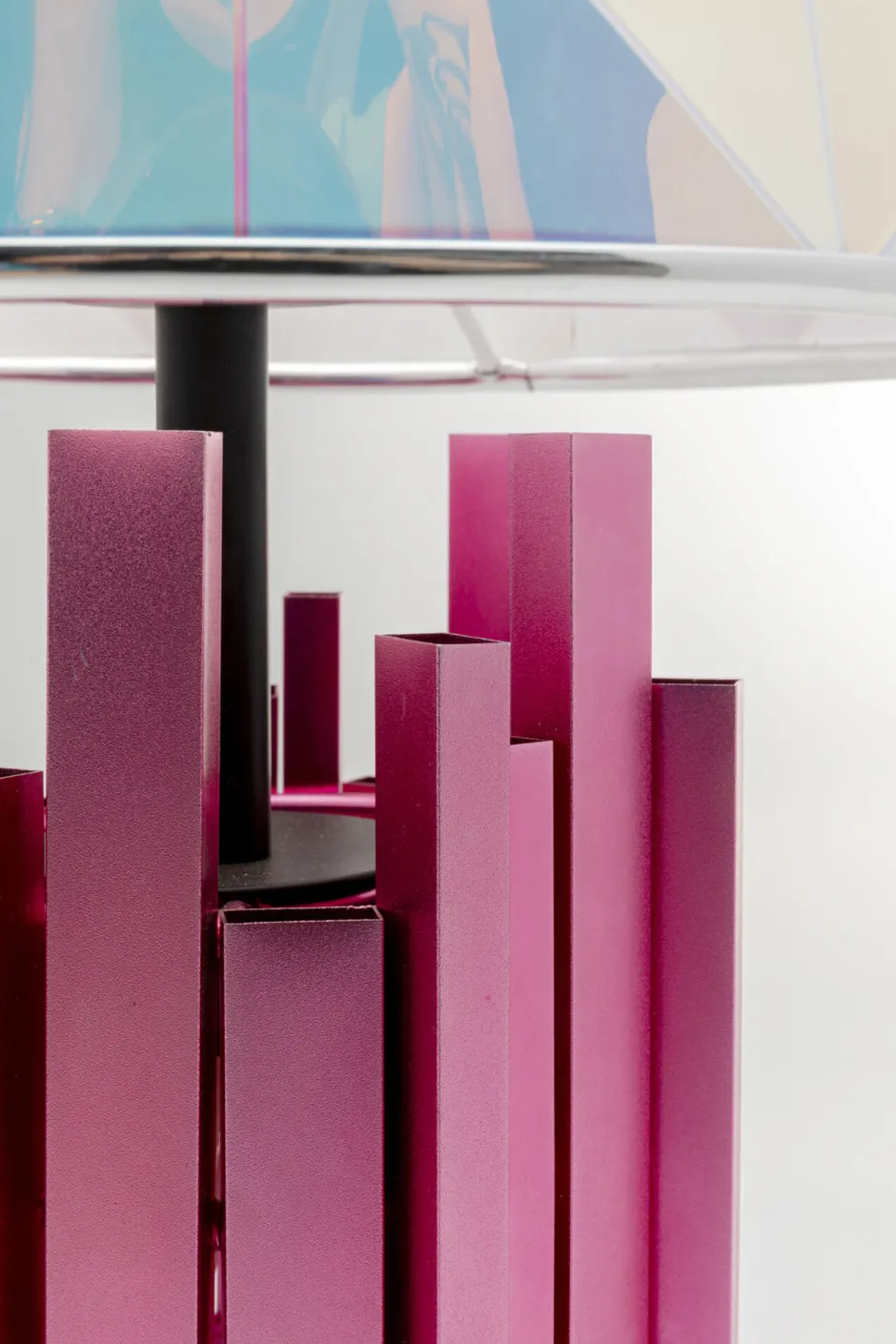 - Der skulpturale Sockel aus Stahl mit pink-glänzendem Finish unterstreicht das kreative Design der Lampe