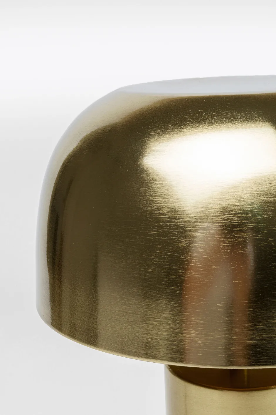 - Mittelgroße, messingfarbene Tischlampe in Pilzform aus Stahl und mit zylinderförmigem Fuß