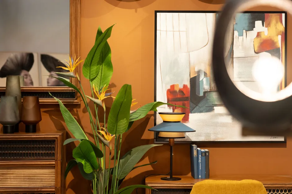 - Stylische Tischlampe mit farbigem Schirm, 48.5 x 35 x 35 Zentimeter (H/B/T)
