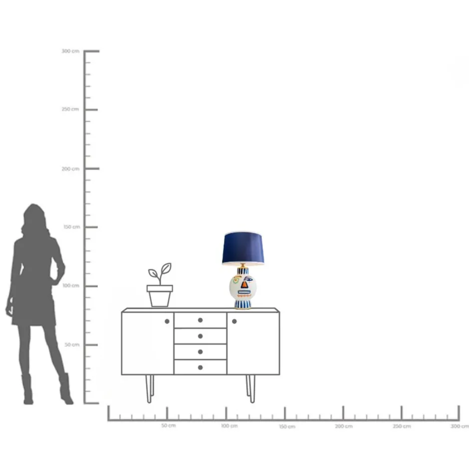 - Tischleuchte in Weiß und Blau mit abstraktem Motiv, 65 x 38 x 38 Zentimeter (H/B/T)