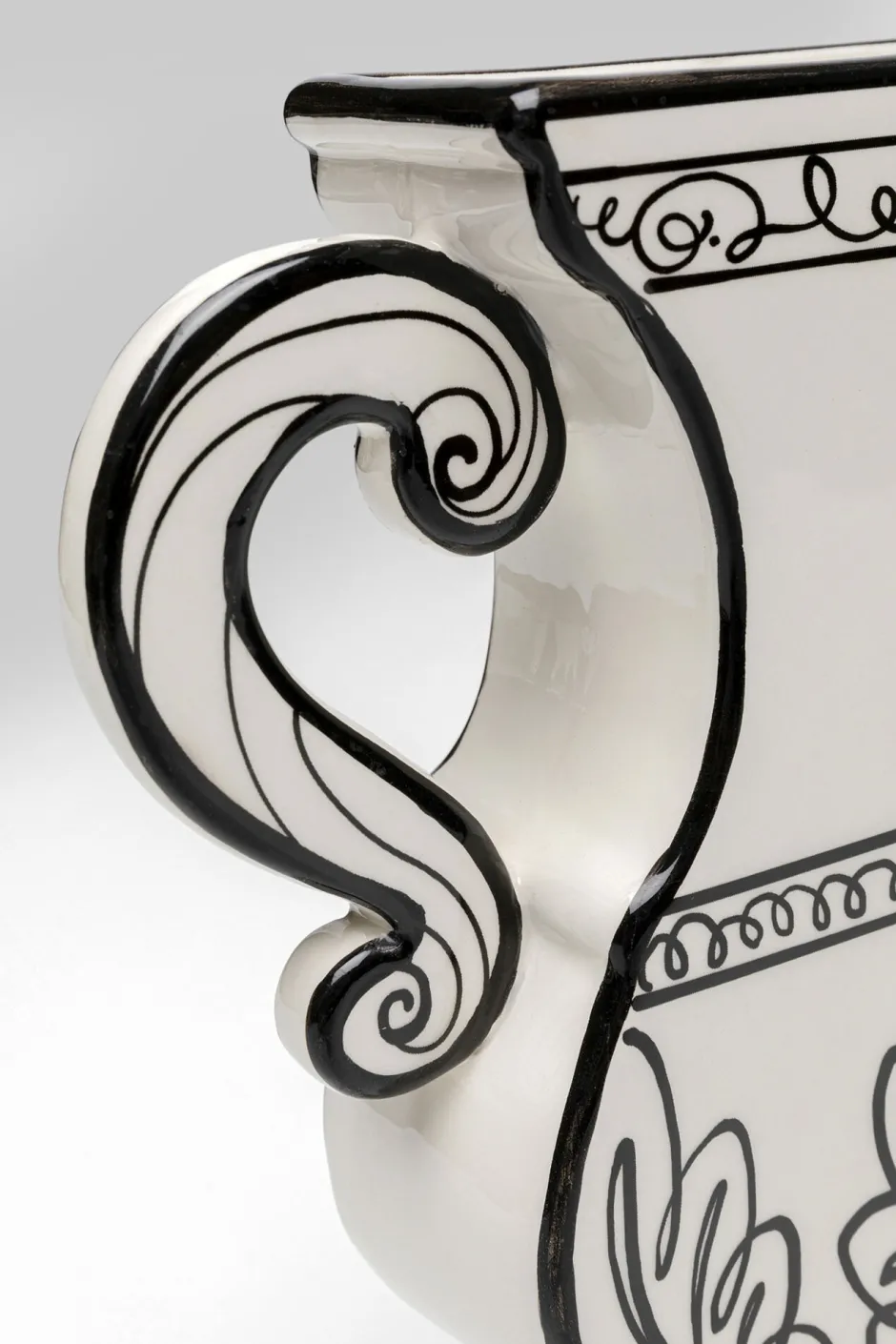 Vase Favola 24cm Schwarz-weiße Vase aus glasierter Keramik, 23.5 x 23 x 5.2 Zentimeter (H/B/T)Teils in Handarbeit herge…