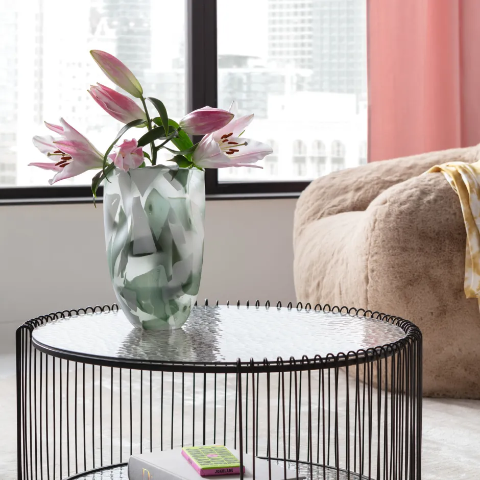 - Hergestellt aus gefärbtem Glas in Pastell-Grün und Weiß