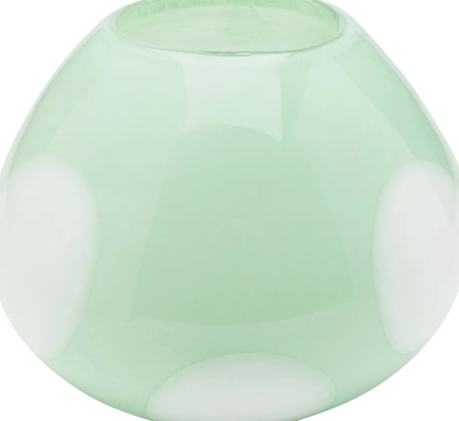 - In einem erfrischenden Pastellgrün mit weißen Akzenten und dank der abgerundeten Form setzt die Vase stilvolle Akzente