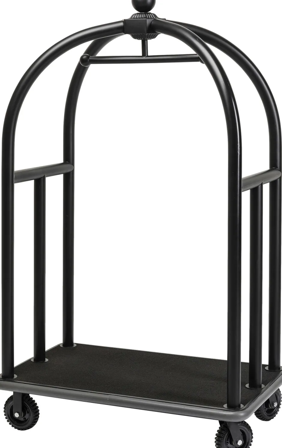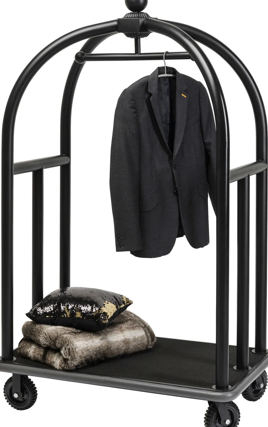 - Flexibel einsetzbar: luxuriöser, mattschwarzer Gepäckwagen auf Rollen im Grandhotel-Style