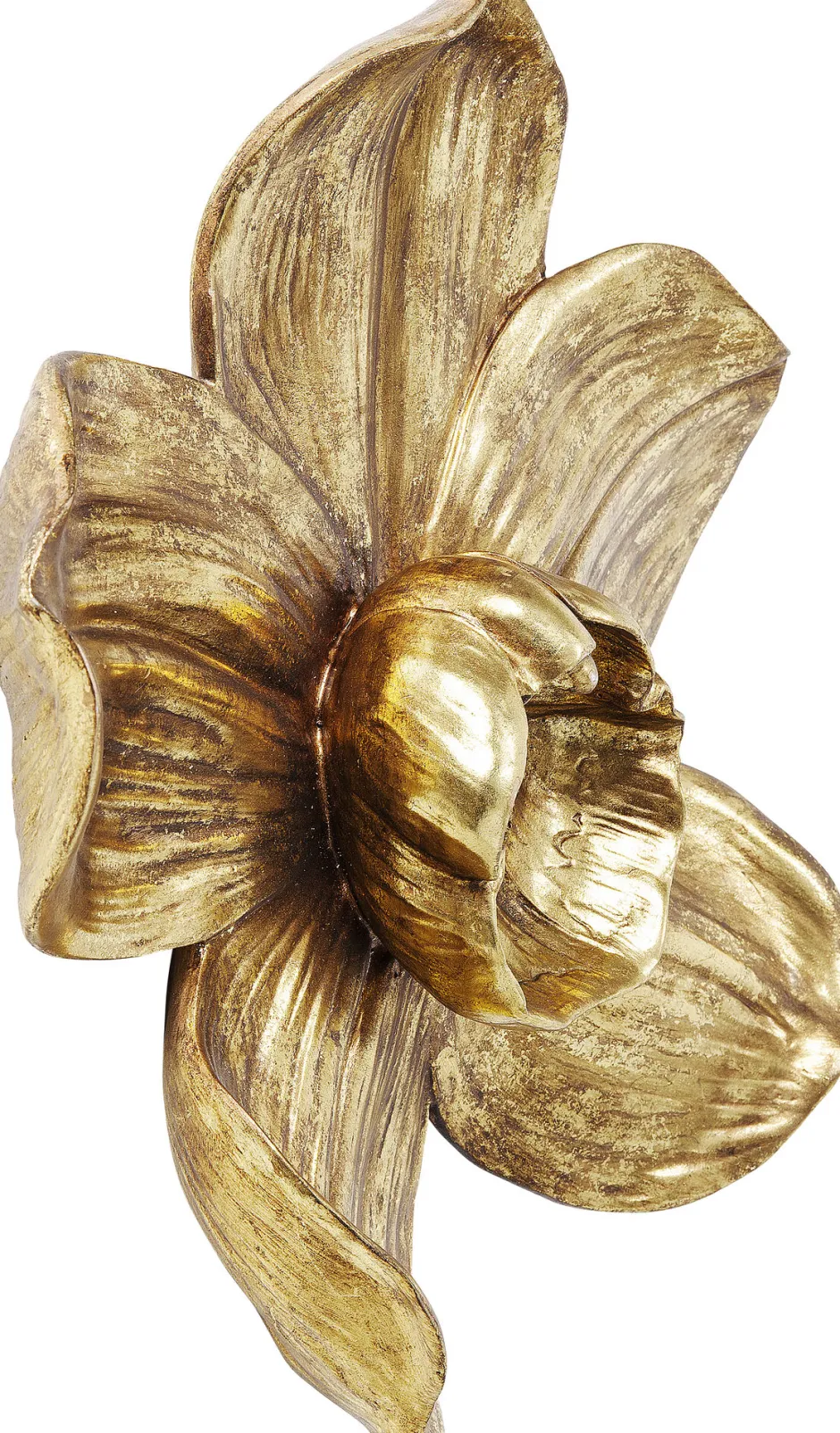 - Handmade Wanddeko: Die goldglänzende Orchideen-Blüte ist von Hand gefertigt