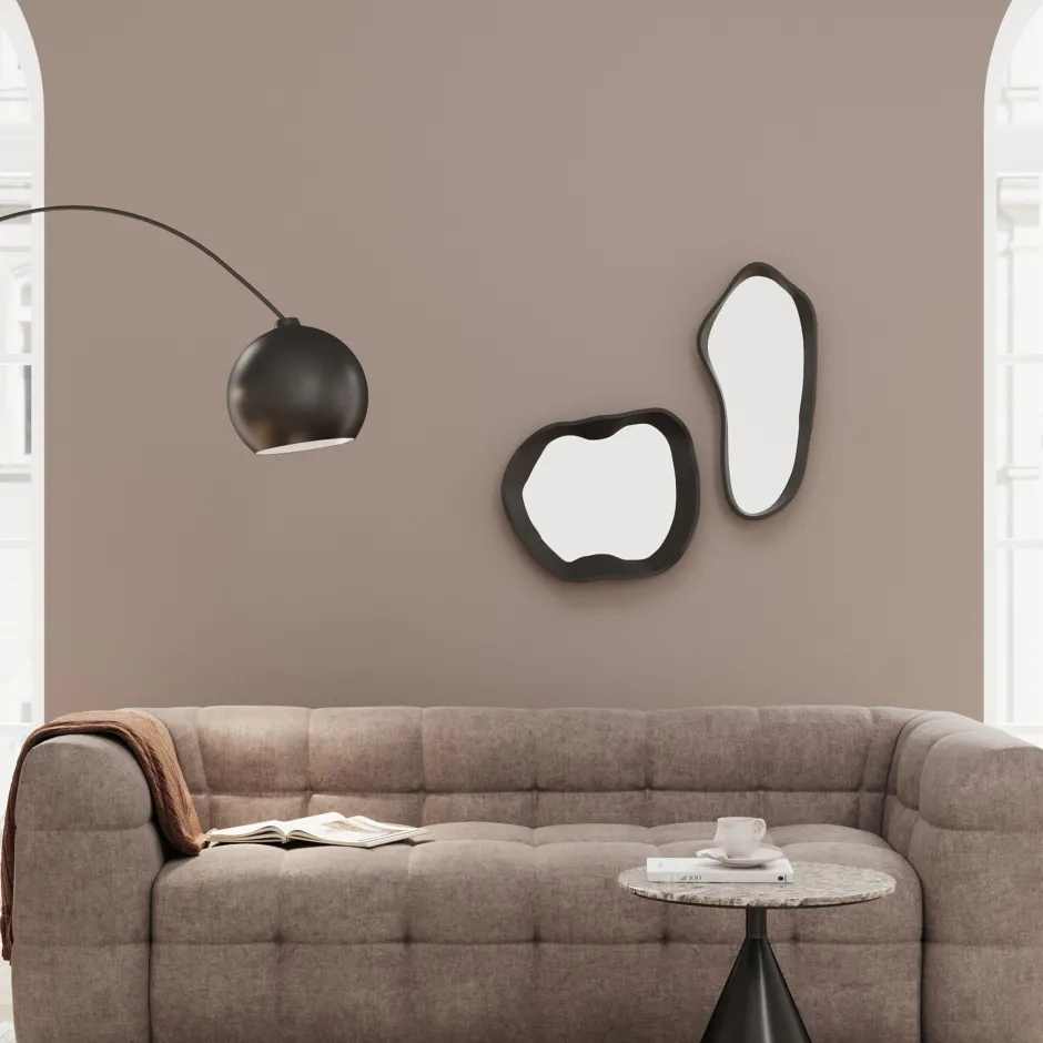- Der Spiegel bringt mit seiner abstrakt geschwungenen Form Dynamik in minimalistische oder moderne Interieurs